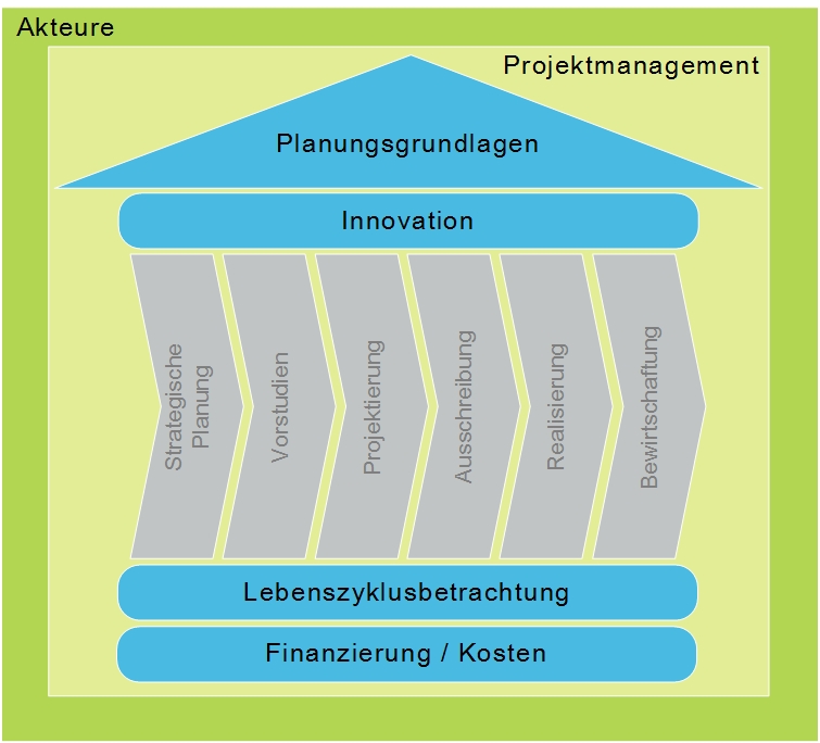 Verortet werden die Inhalte an der bekannten Phasenstruktur des SIA Leistungsmodels 112 – ersichtlich an der obigen Grafik.
